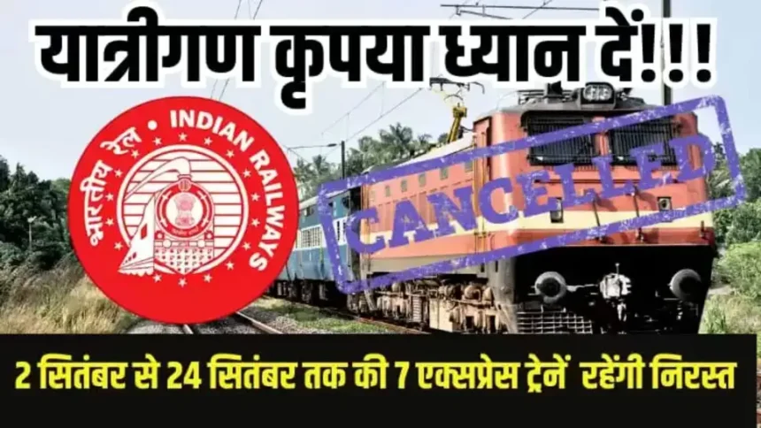 Ratlam Railway Mandal: रतलाम रेलवे मंडल से होकर चलने वाली सात एक्सप्रेस ट्रेनों को रेलवे ने 2 से 24 सितंबर तक के लिए निरस्त कर दिया है। इसकी वजह जम्मू मंडल के कठुआ-माधोपुर पंजाब रेल खंड में रेलवे द्वारा ट्रैफिक को सस्पेंड करना है। इसके अलावा दो अन्य एक्सप्रेस ट्रेन को अंबाला स्टेशन पर शार्ट टर्मिनेट किया है। इनमें 2 से 19 सितंबर तक 12919 डॉ. आंबेडकर नगर श्रीमाता वैष्णोदेवी कटड़ा एक्सप्रेस अंबाला स्टेशन तक ही जाएगी। अंबाला से कटड़ा तक निरस्त रहेगी। वहीं 3 से 20 सितंबर तक 12920 श्रीमाता वैष्णोदेवी कटड़ा- डॉ. आंबेडकर नगर एक्सप्रेस अंबाला रेलवे स्टेशन से चलेगी। कटड़ा से अंबाला के बीच निरस्त रहेगी।